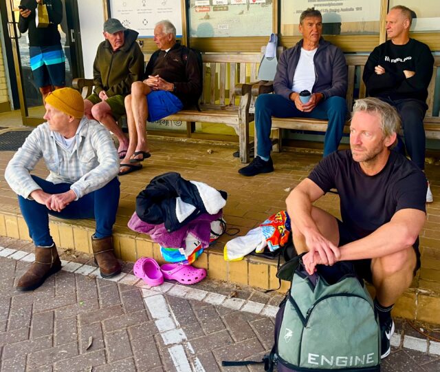 All eyes, including Andrew (great hair Drinky), on the surf !!!!!!!! Massive!!