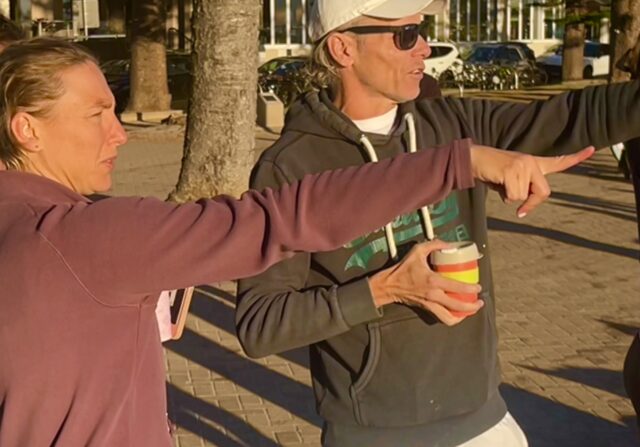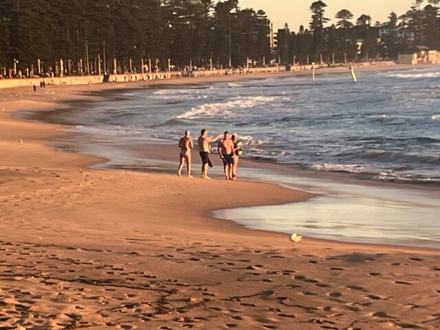 @6:28 Brett, Ali, Trish & David also walked to the pyramid steps and attempted surfing from the first line of white water waves. I joined them as we got a full workout  sprinting north, against the super strong rip, to avoid being sucked south into the rocks.