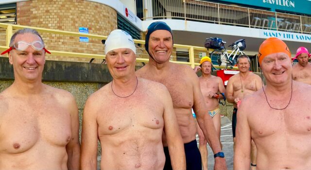 20 tri-athletes swim from the ramp every Monday. I caught some of them suiting up. They are training for the Triathlon world championships in Weihai, China on Friday (26/9/25). The Tri Swim is 1500m. I reminded them that Manly’s famous Olympian Andrew Boy Charlton’s 1500m time was 20 min 6 secs (1928). The Tri boys assured me they are faster than Boy Charlton.