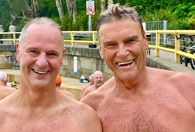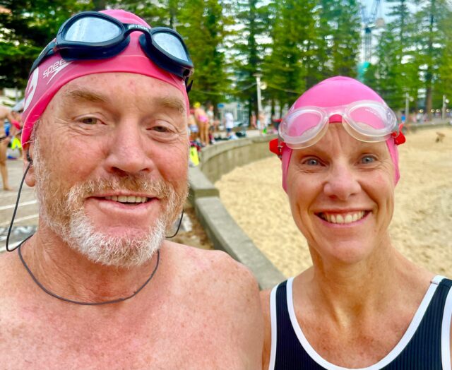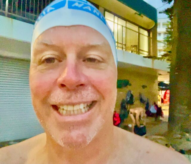 I swam north with Brett Mel Jo Ali Rusty & Greg @6:15. Warmest water of the seain@24 degrees. Lots of 6:30 & 7 am swimmers. The following  shots show how I experienced the morning and includes portraits plus a group shot of the “triathletes”.