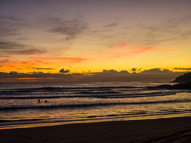 Our crew launched into the rip @6:15 (6 minutes after sunrise). We zigzagged to the pipe using multiple rips (out) & waves (in) – perfect body surfing conditions.