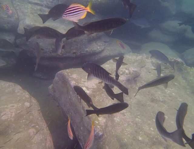 It was one of those days that make ocean swimming very comfy; very warm water, clear skies and water, and the waves were just little ripples.