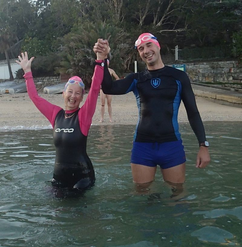 What a gorgeous morning for a swim: warm, clear, and watching the sun rise above the ocean at Manly.