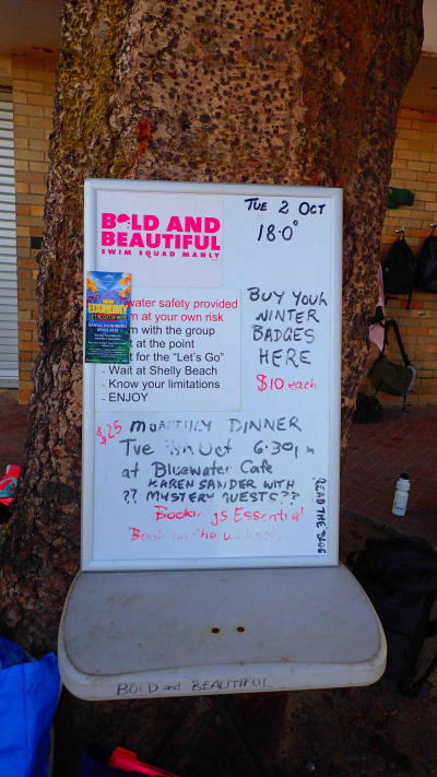 The next B&B monthly dinner for the year will be held on Tuesday 9th October at 6.30 pm at Bluewater Restaurant, and will feature a very different format than normal. Our guest on the night will be one of our swimmers, Karen Sander, who is the creator of the radio program Ageing Fearlessly. Karen will host a Parkinson style show where she will interview three guests. The identity of the guests is being kept under wraps and will only be revealed at the dinner. The one thing that she will let you know is the guests fall into the following categories: