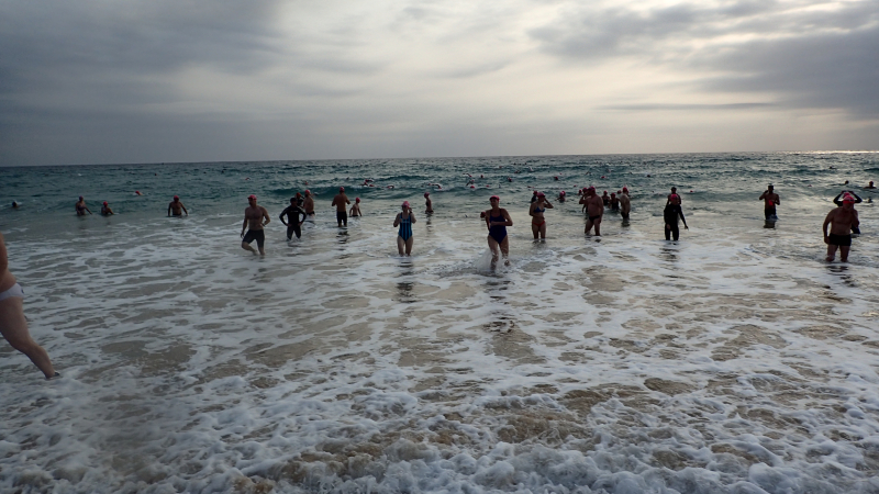 Billiard table conditions greeted the swimmers this morning. Rain clouds…
