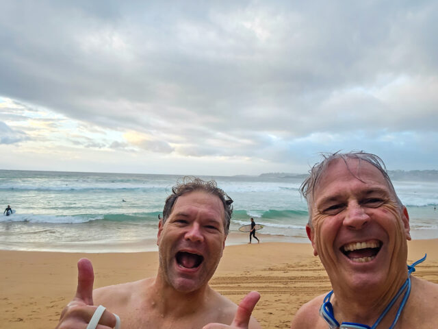 After a run-in with a surfer’s leg rope that sounded suspiciously like nautical bondage, he declared the sea wild, the surfers wilder… 😉 what happens past the break, stays past the break.