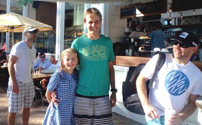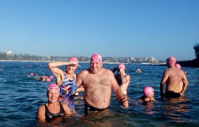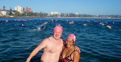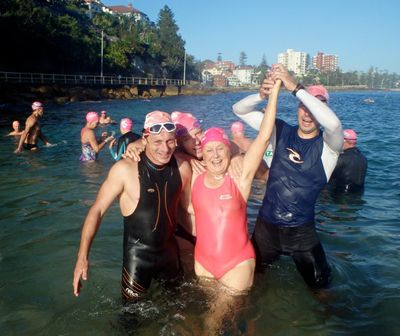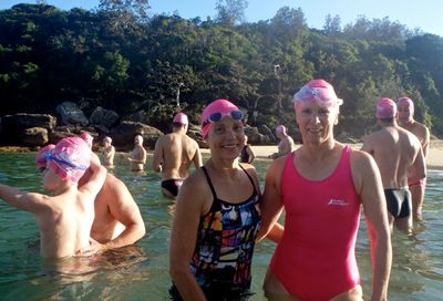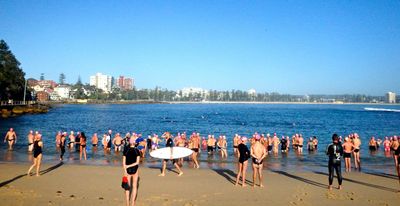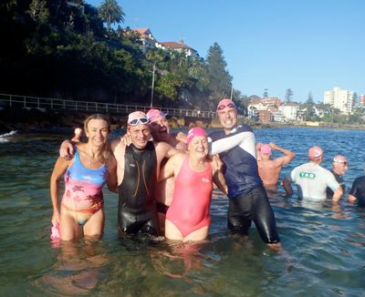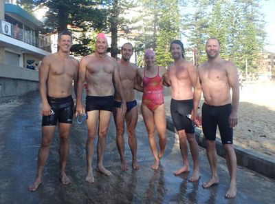 Well I managed to back up the Santa Pub Crawl with a run and swim Lesbubbs! Beautiful morning down at Mantown. Heather and I even got serenaded by an out-of-tune ‘musician’ at Manly Wine. Those Primary school children I took photos of all got their winter badges. Good on them! Have a great week folks!
