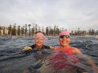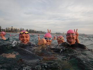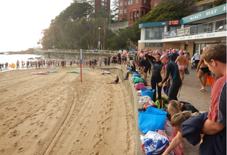 Today was a little bit choppy but the water temperature was delightful. I heard many a comment post swim of how much people enjoyed being in the ocean this morning.