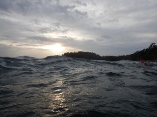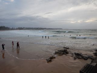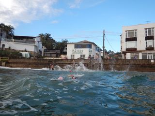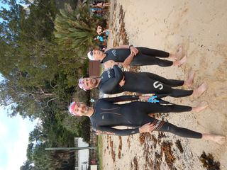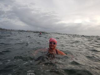 The swell was up and we faced challenging conditions today.  The group split into a few options: some braved the waves at the beach, others navigated the rocks at half way, and some entered from Shelley to swim out and back.  The warm water made up for the chop!  Today was a special day for Elizabeth who clocked an amazing 1000km with B&B!