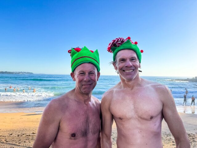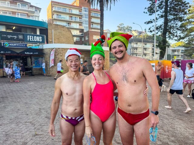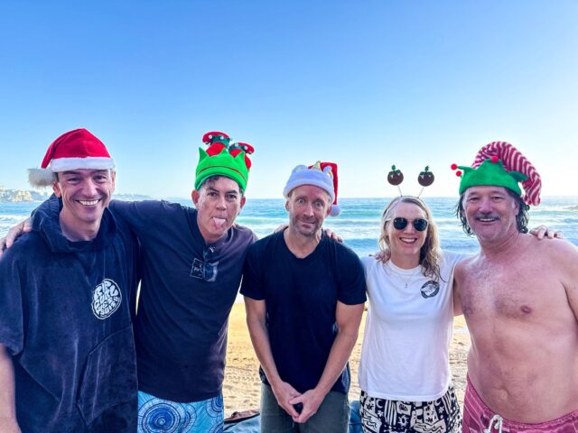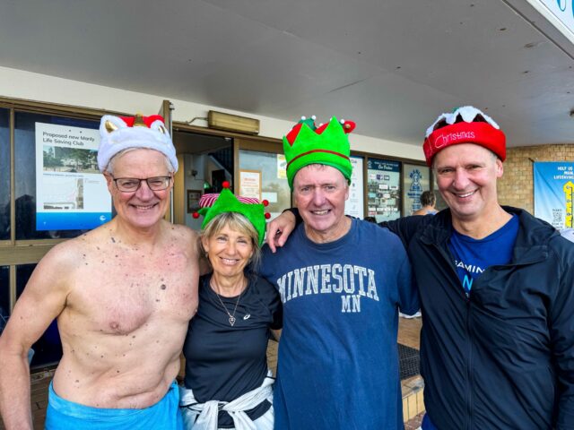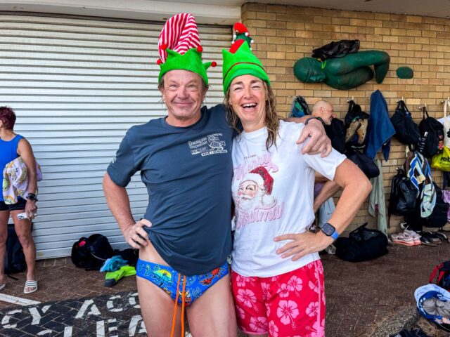 Holiday cheer everywhere π swimmers heads bobbing in the water like festive buoys β€οΈ