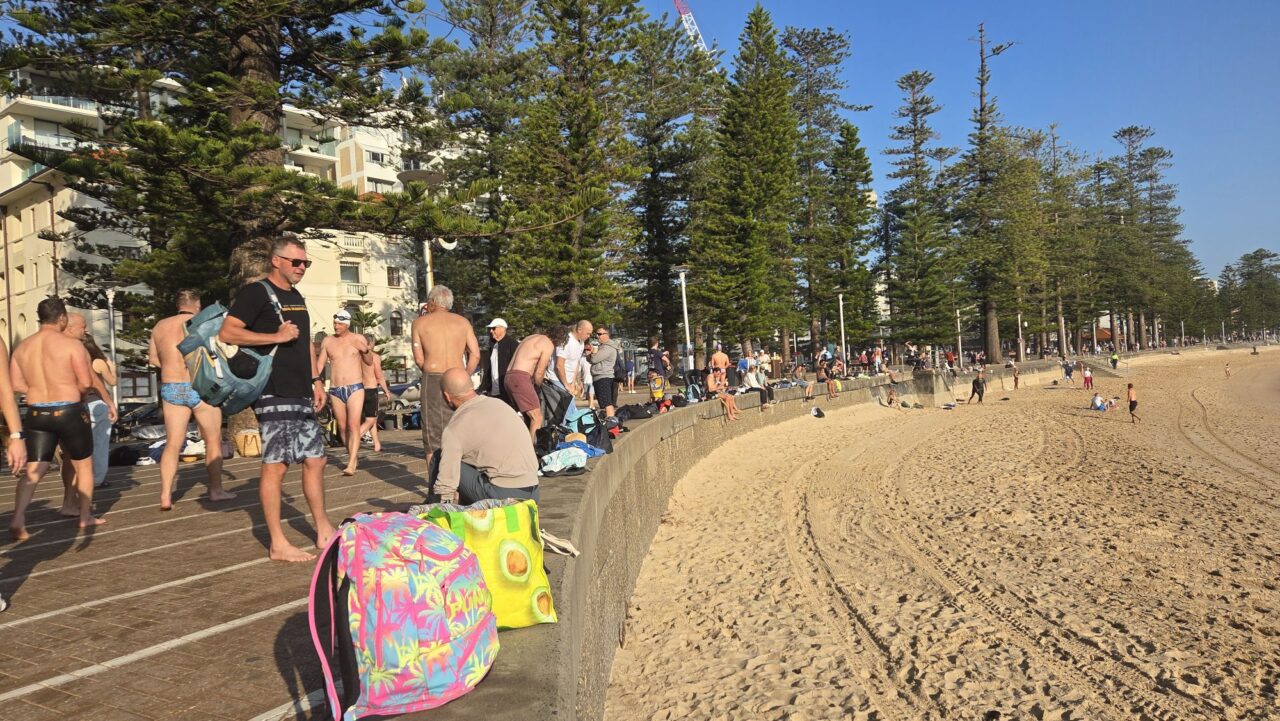 Everyone comes down here and finds their own way to connect — through the water, the chatter, or simply sitting still. The water temperature, a perfect 20.3°C, has drawn the crowd even more today, inviting swimmers and surfers alike to dive in.