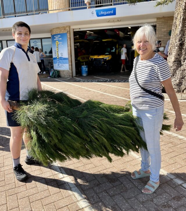 Henrietta bought a real Christmas tree and had some help taking it home,