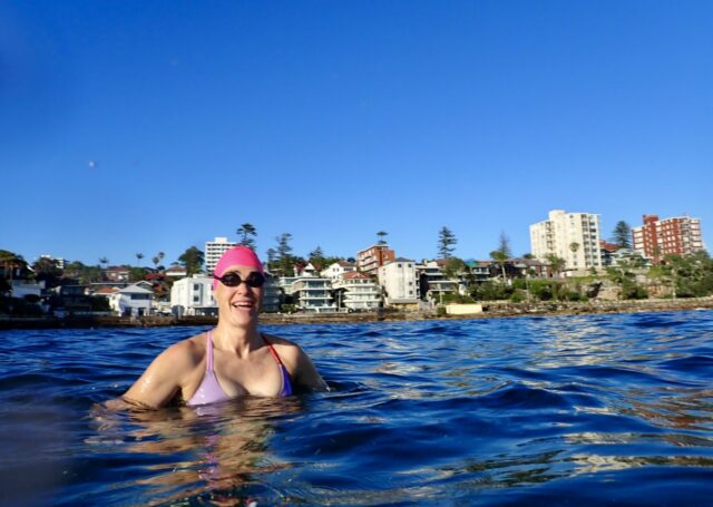 Ian found three of us chatting and swimming, here he is with Robyn and Belinda. Ian later saw the turtle and a wobbegong . Later on I found Victoria doing some laps .