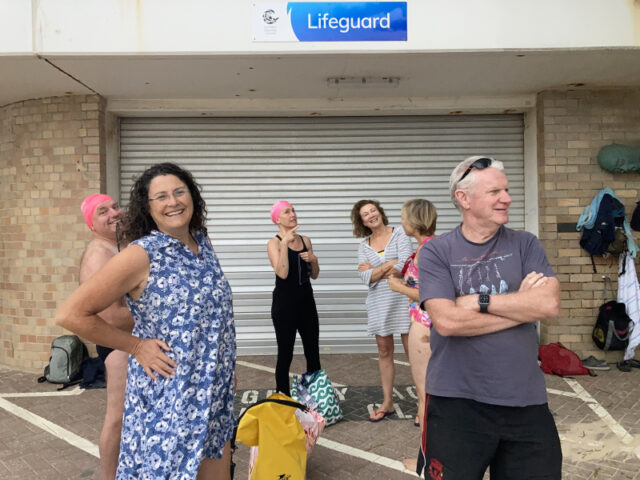 Another moody, beautiful morning, the sea is warm and to mark the end of the week the talk is around having a slow swim…there is even a talk of a unofficial slow 6km. Now, a 6km swim for me is by definition SLOW. I have to miss this one, however you can see these brave peeps below. May the conditions be kind and body strong,