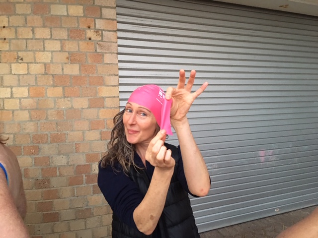 Lesley had some funky styling going on there, with a broken swim cap (don’t worry Ian has a bountiful supply when little mishaps happen).