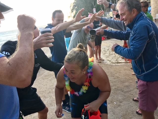 Lesley had some funky styling going on there, with a broken swim cap (don’t worry Ian has a bountiful supply when little mishaps happen).