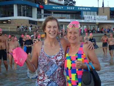 This morning as we headed down to Manly beach the sunrise was spectacular and we were full of hope that the bluey attack of yesterday would be behind us and it would be perfect conditions for our swim. But alas there were still reports of blueys.
