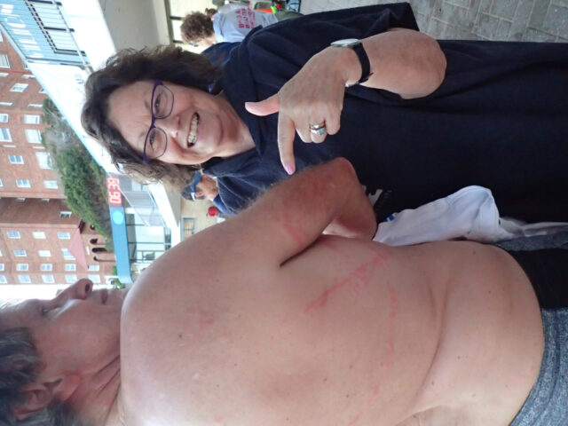 Ian was the centre of attention after his attack yesterday. All the girls wanted to see the damage.