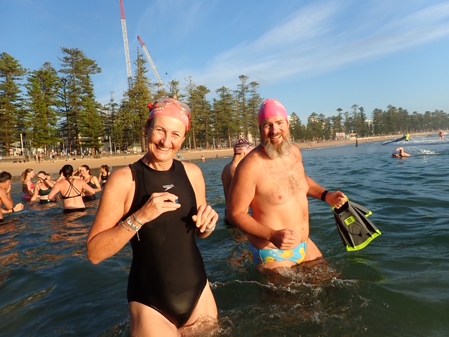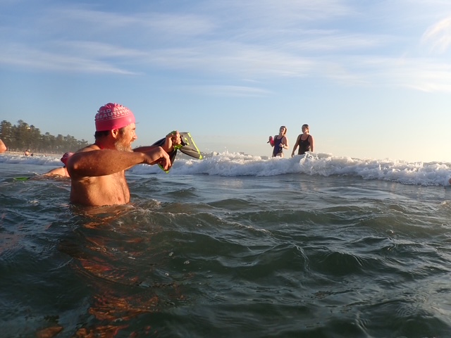 One of those days when the waves have created channels and troughs – here is a photo of swimmers posing to demonstrate the height difference.