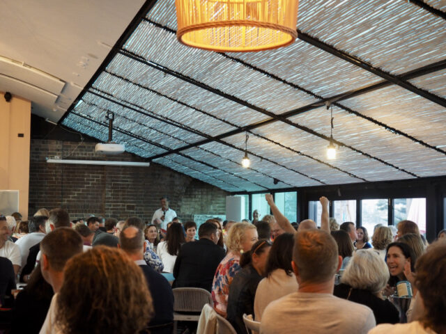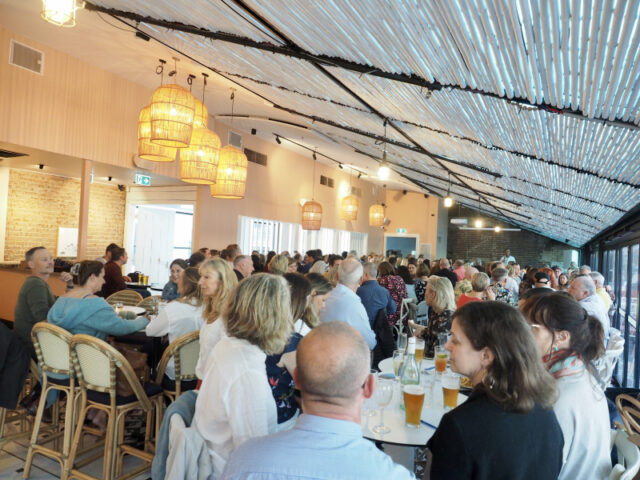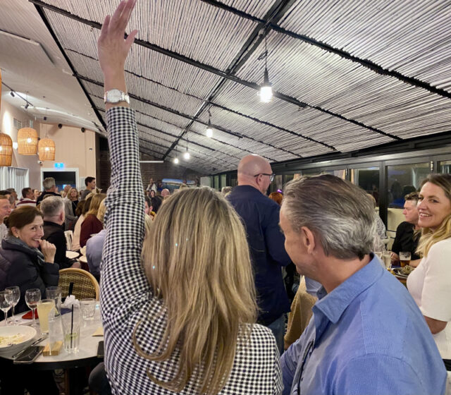 OLYMPUS DIGITAL CAMERAThe energy in the room was electric – 200 of the BnB community filled 20 tables upstairs at the Steyne – the aim being to outwit and outsmart all the other teams and the quiz master extraordinaire, John “JK” (“lets go”) Kelly! Lots of fun and good natured banter was exchanged between “tribes” who were all convinced they were “right”, and the winners crowned and presented with their prizes of rubber duckies, wine and a new “perpetual trophy”, manifesting future events!
