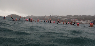Some early swimmers returning, with reports of unexpectedly good conditions despite some bumpiness in the middle